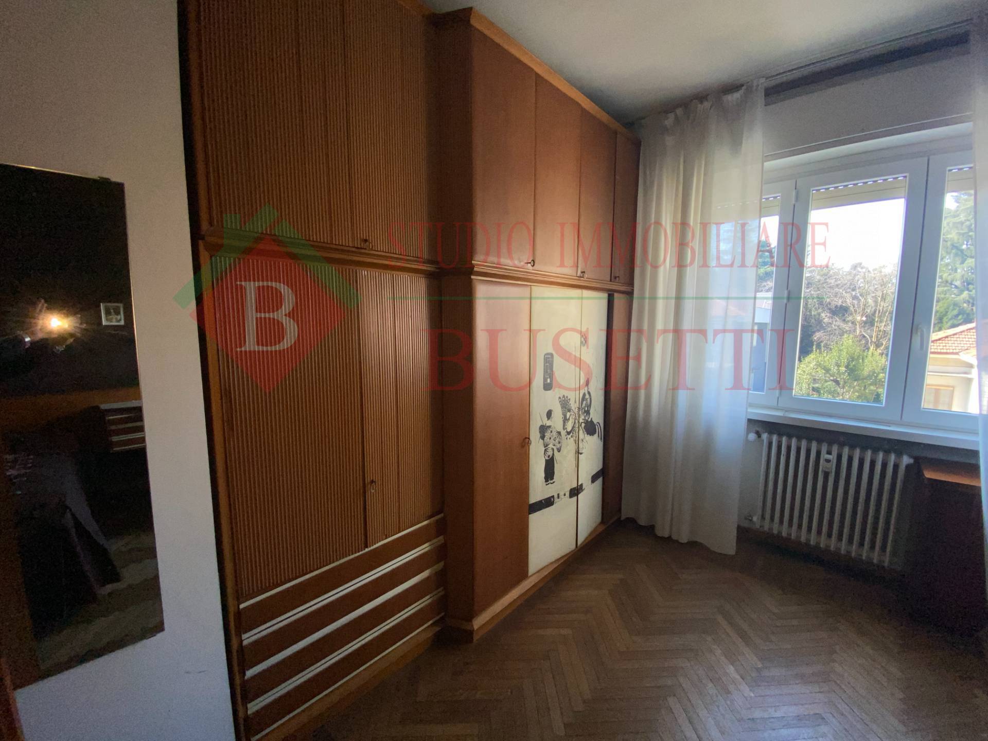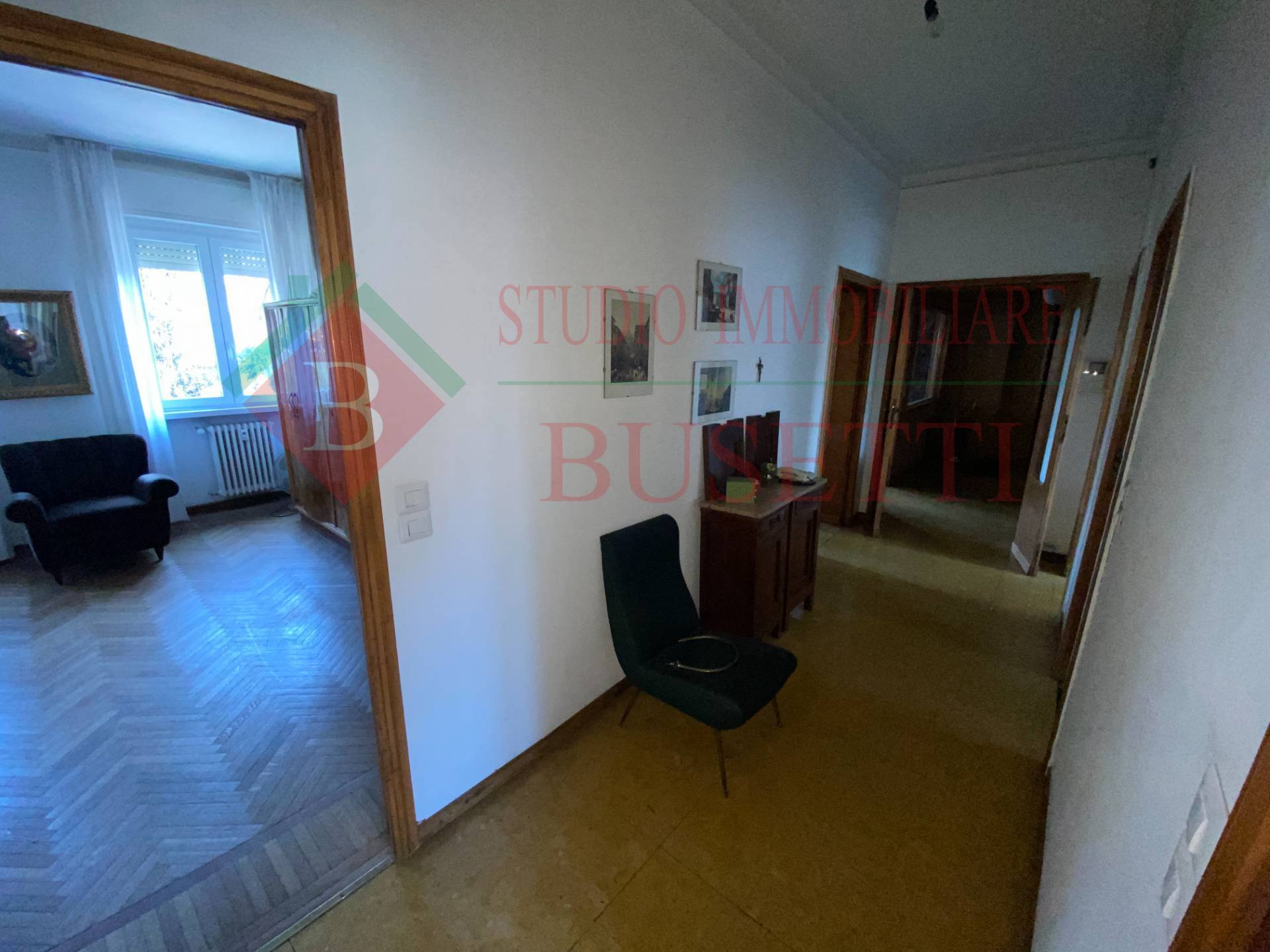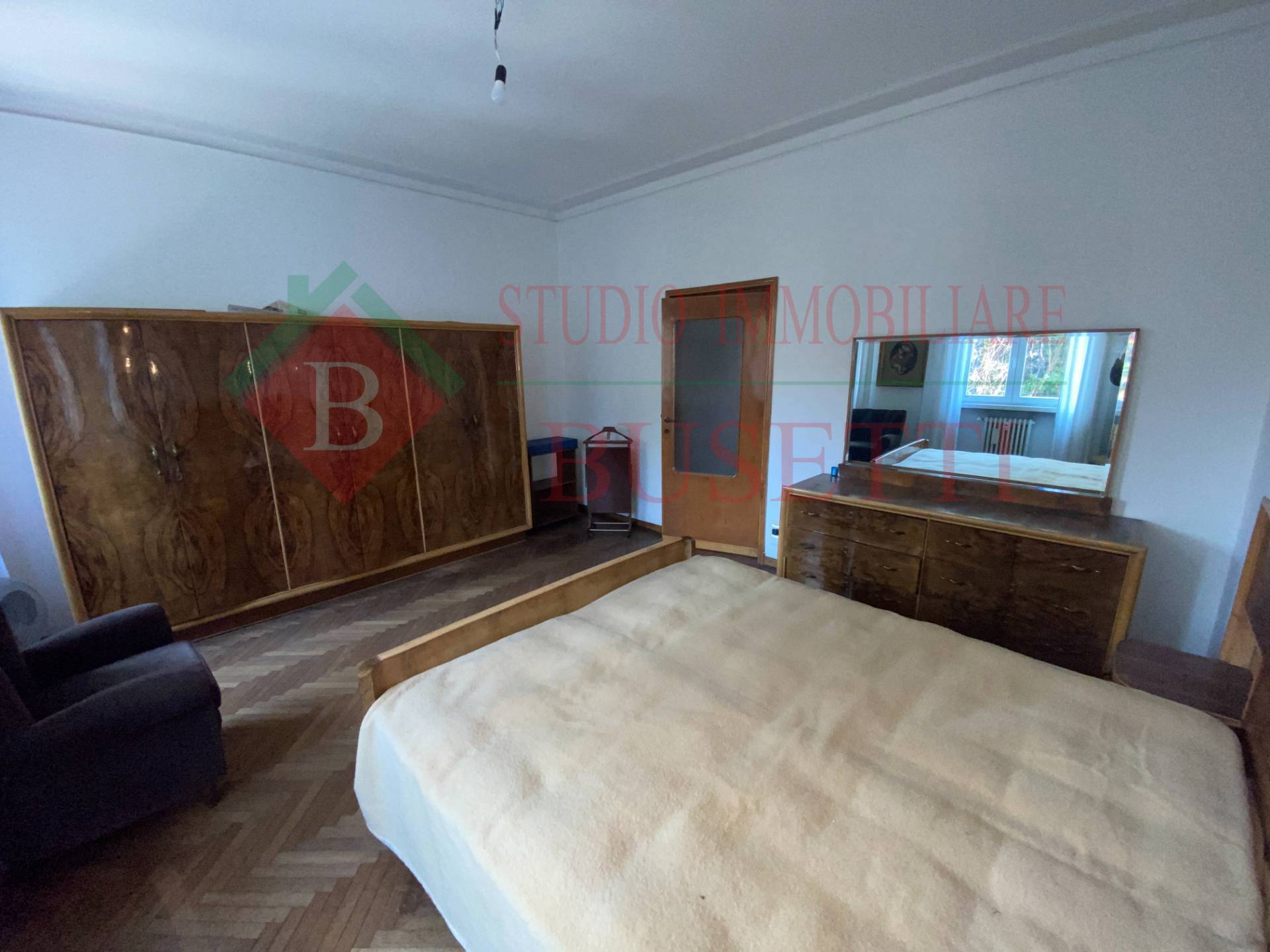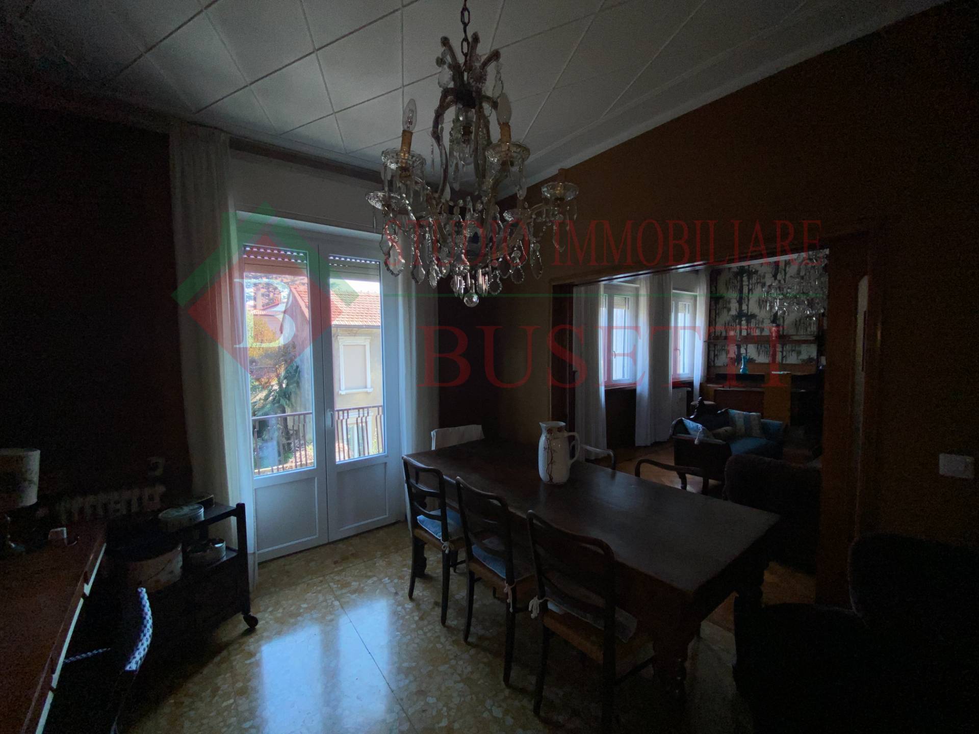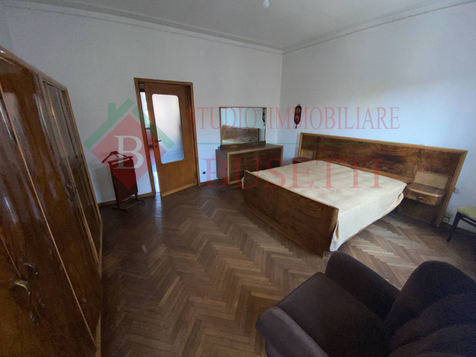A pochi passi dal centro cittadino in stabile ben tenuto ampio Appartamento di quattro locali posto al piano primo. La zona giorno si compone da un ingresso , da un ampio e luminoso soggiorno, una cucina abitabile con balcone ed un locale pluriuso con balcone. La zona notte ben disimpegnata è costituita da due ampie camere da letto, un bagno molto spazioso ed un ripostiglio. Le finiture originali presentano pavimenti in parquet dell' epoca ben curati. L' Appartamento è dotato di serramenti in PVC con doppio vetro e di impianto elettrico certificato in quanto rifatto recentemente. Completano la proprietà un vano cantina ed un ripostiglio al piano sottotetto nonché un ampio box uso autorimessa al piano terra collegato internamente al vano scala condominiale. Libero subito.
