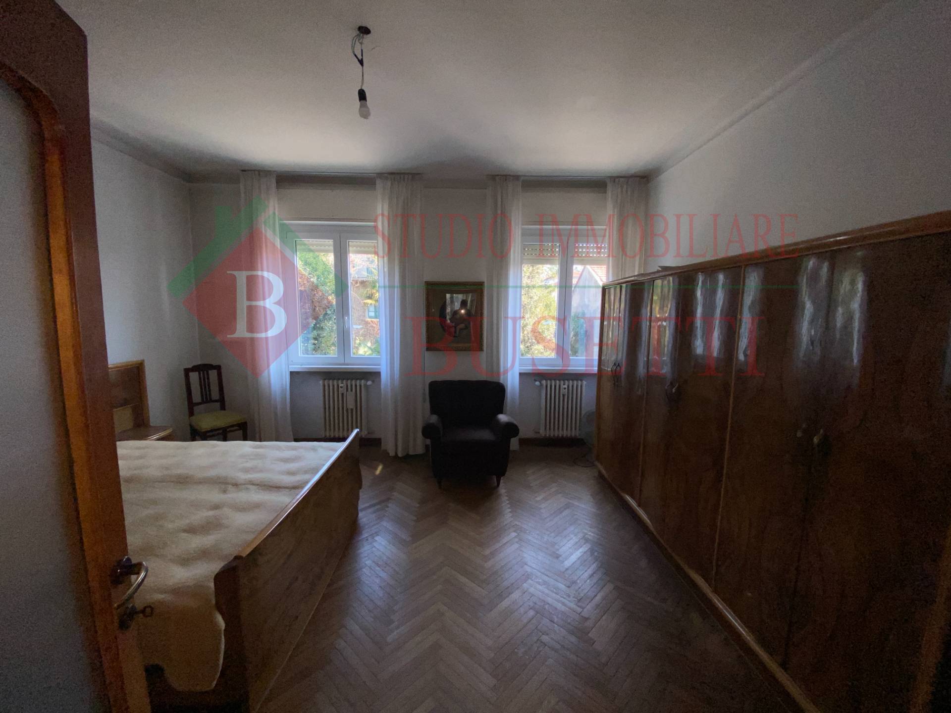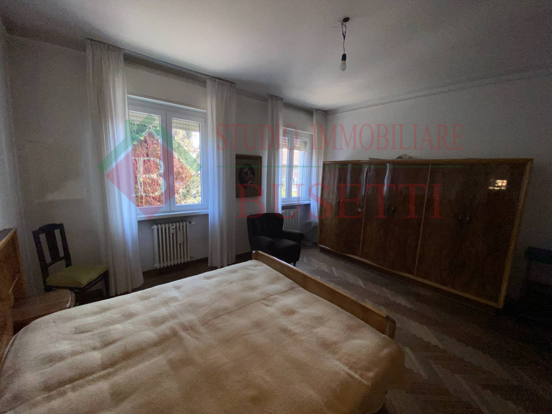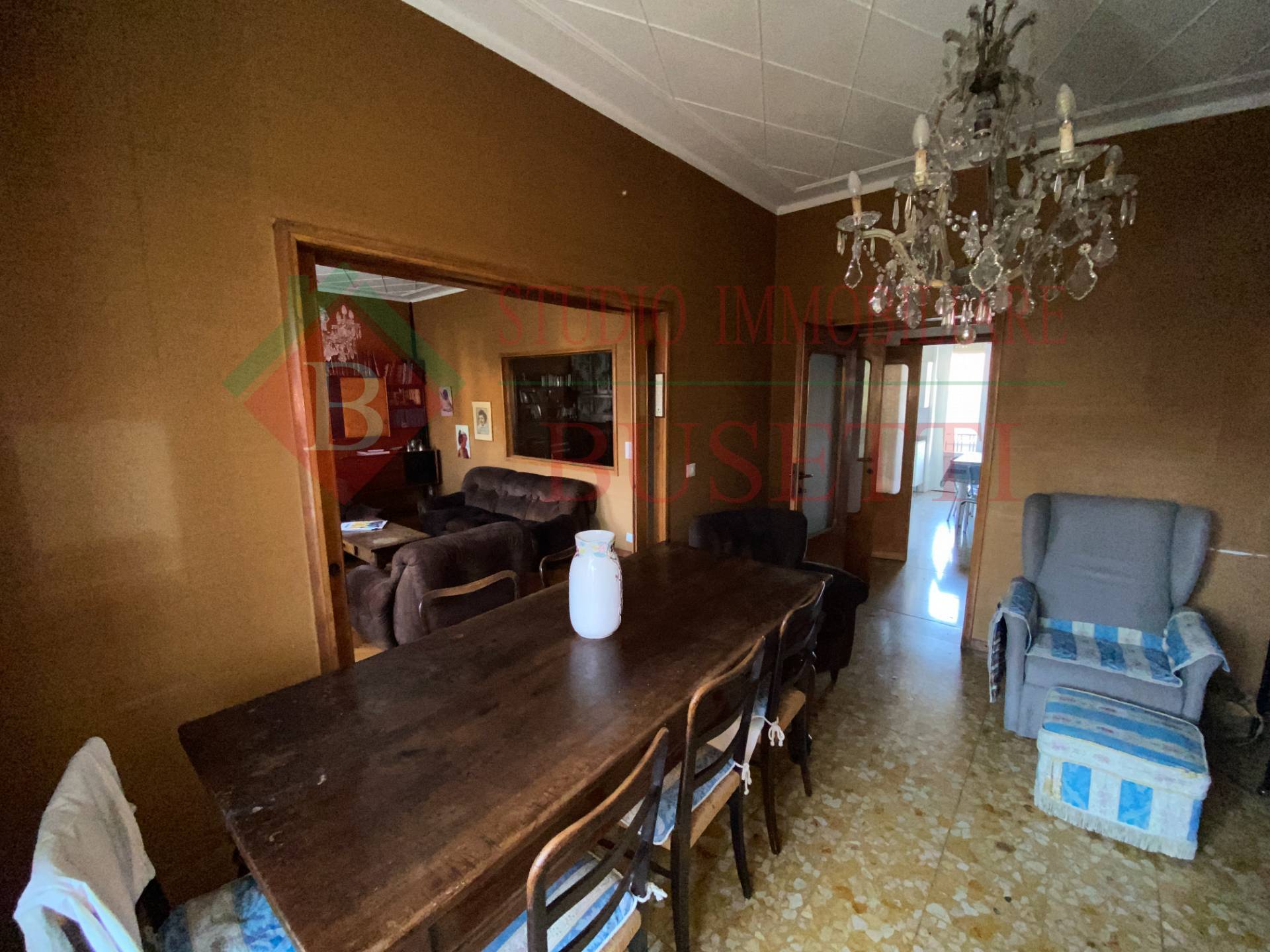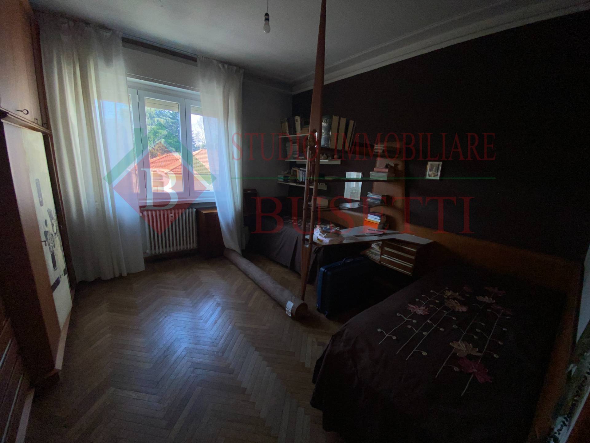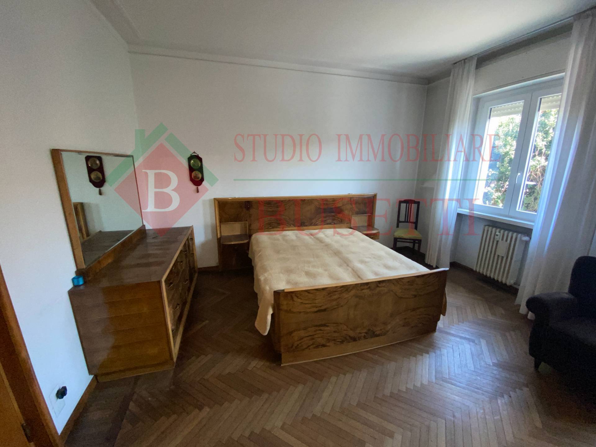 A pochi passi dal centro cittadino in stabile ben tenuto ampio Appartamento di quattro locali posto al piano primo. La zona giorno si compone da un ingresso , da un ampio e luminoso soggiorno, una cucina abitabile con balcone ed un locale pluriuso con balcone. La zona notte ben disimpegnata è costituita da due ampie camere da letto, un bagno molto spazioso ed un ripostiglio. Le finiture originali presentano pavimenti in parquet dell' epoca ben curati. L' Appartamento è dotato di serramenti in PVC con doppio vetro e di impianto elettrico certificato in quanto rifatto recentemente. Completano la proprietà un vano cantina ed un ripostiglio al piano sottotetto nonché un ampio box uso autorimessa al piano terra collegato internamente al vano scala condominiale. Libero subito.