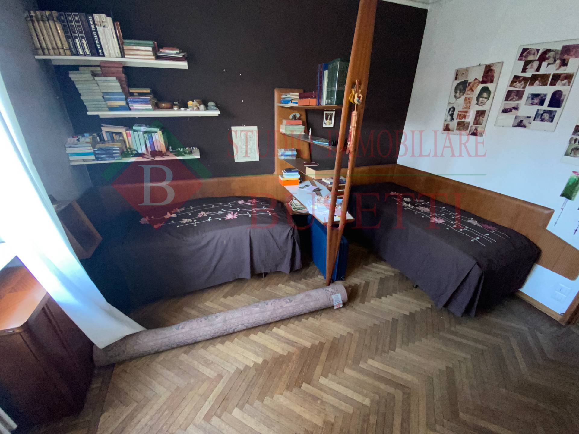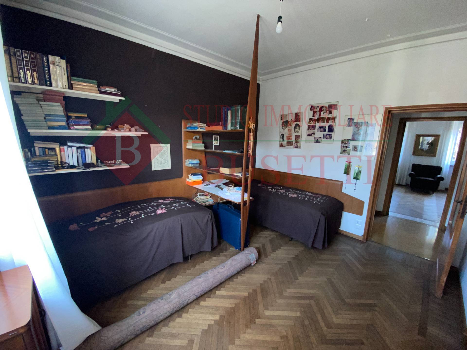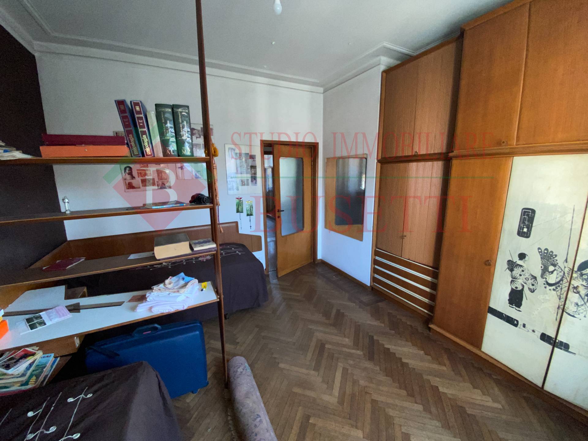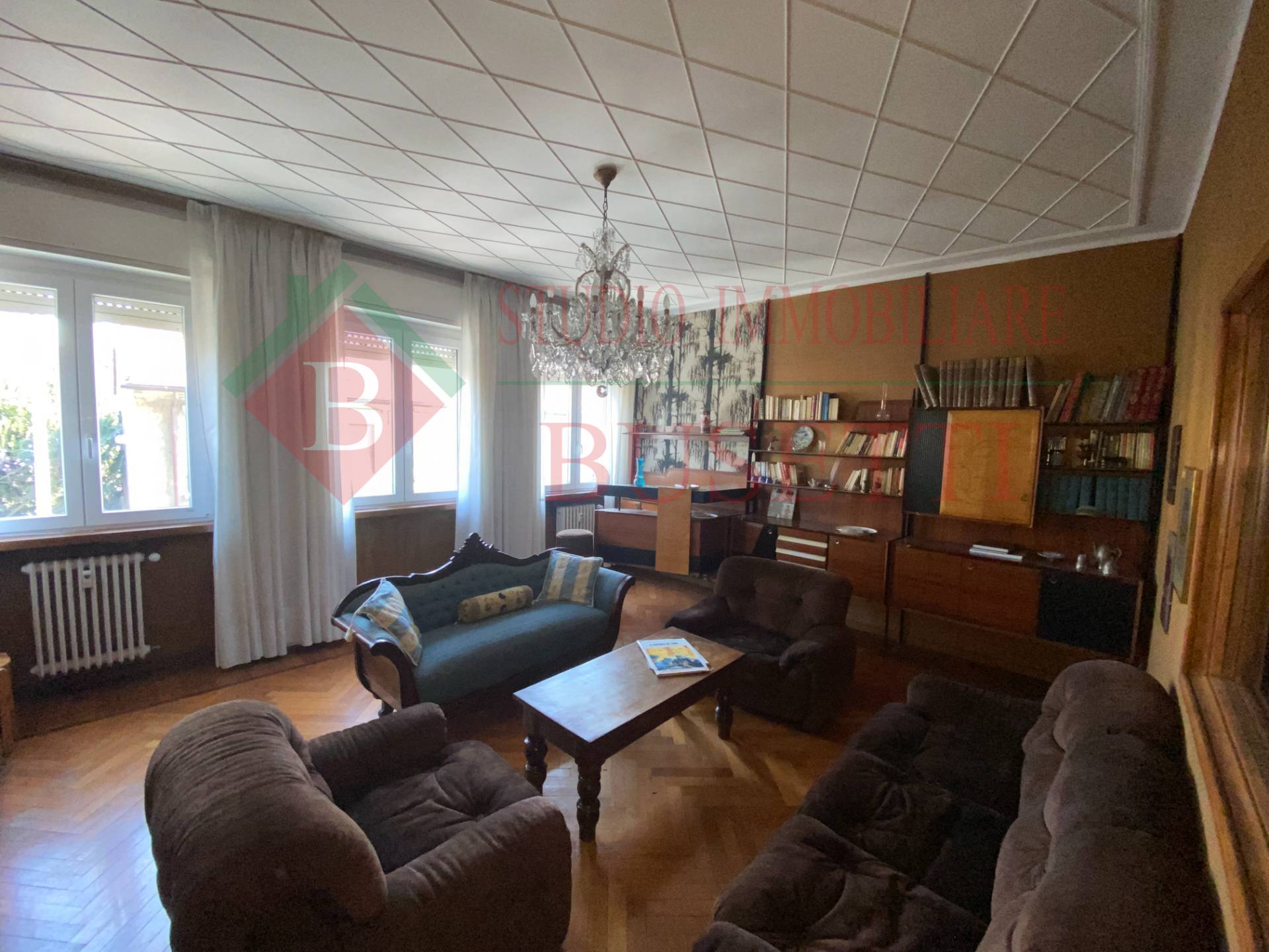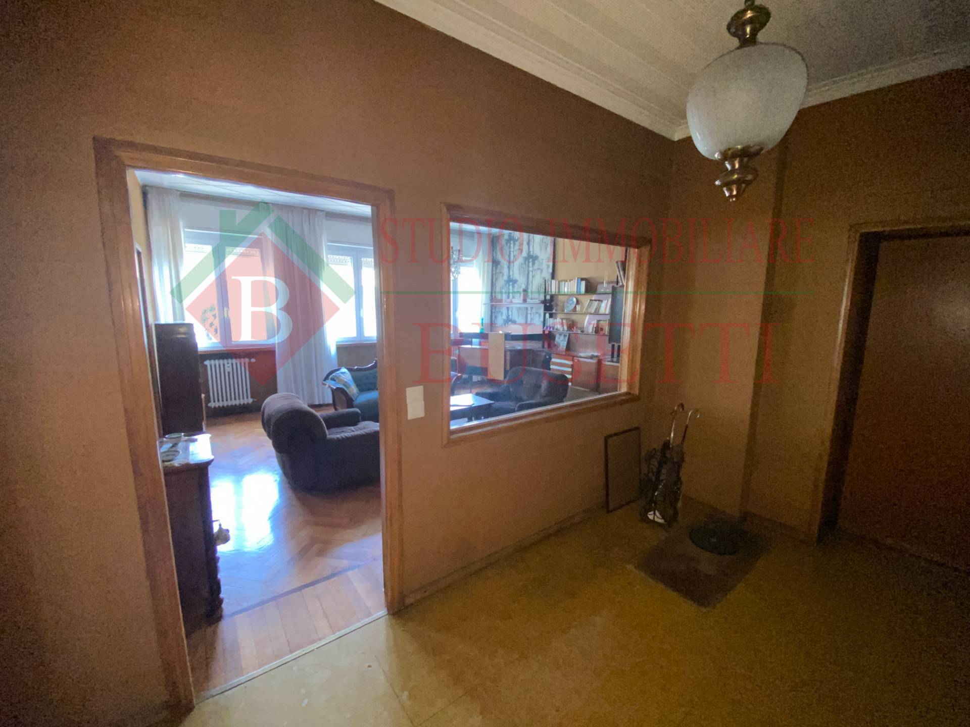 A pochi passi dal centro cittadino in stabile ben tenuto ampio Appartamento di quattro locali posto al piano primo. La zona giorno si compone da un ingresso , da un ampio e luminoso soggiorno, una cucina abitabile con balcone ed un locale pluriuso con balcone. La zona notte ben disimpegnata è costituita da due ampie camere da letto, un bagno molto spazioso ed un ripostiglio. Le finiture originali presentano pavimenti in parquet dell' epoca ben curati. L' Appartamento è dotato di serramenti in PVC con doppio vetro e di impianto elettrico certificato in quanto rifatto recentemente. Completano la proprietà un vano cantina ed un ripostiglio al piano sottotetto nonché un ampio box uso autorimessa al piano terra collegato internamente al vano scala condominiale. Libero subito.