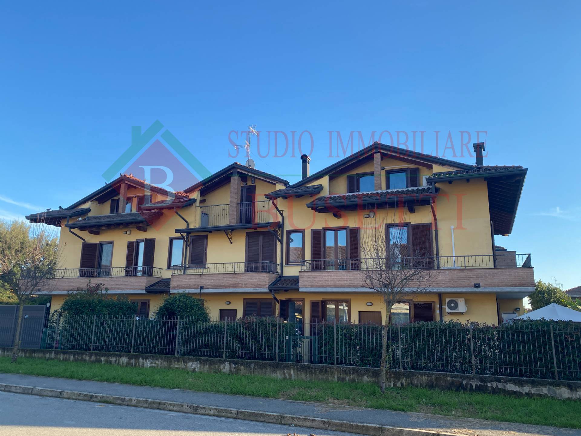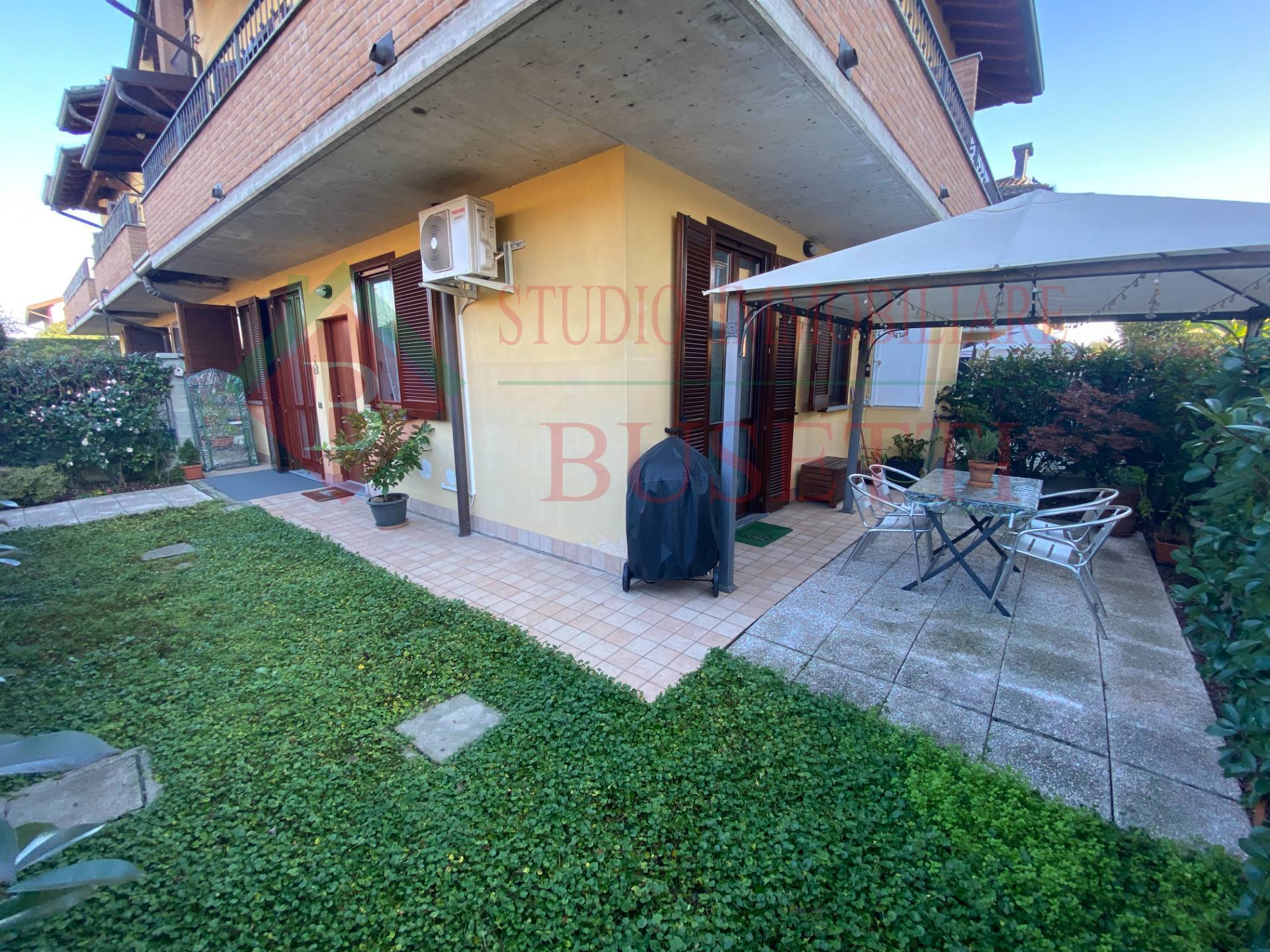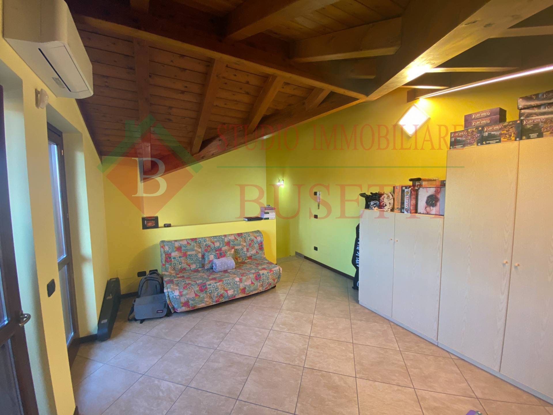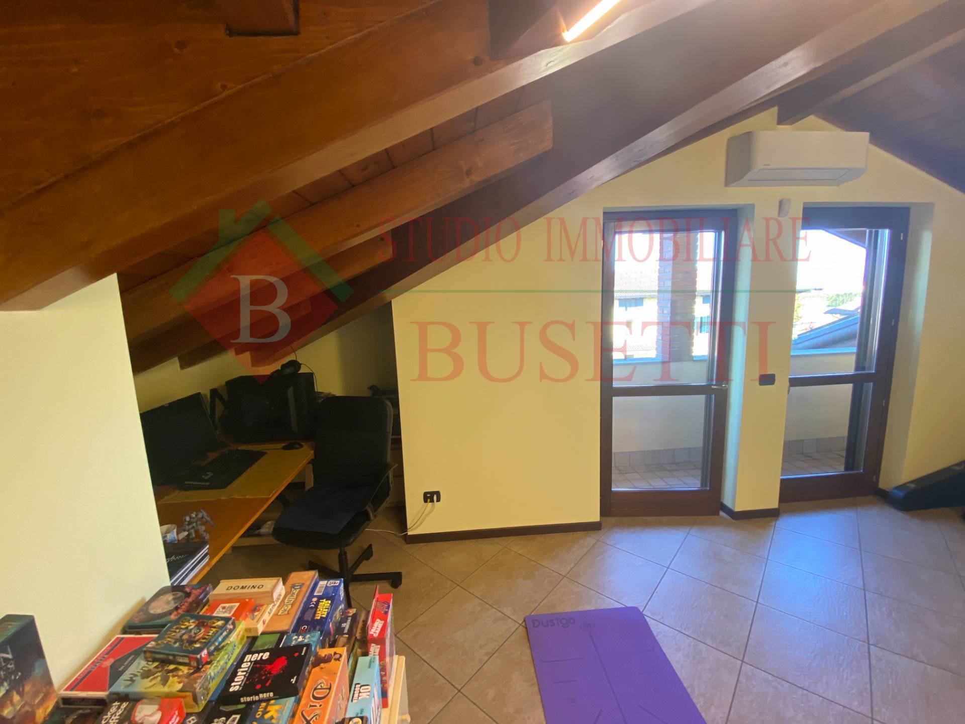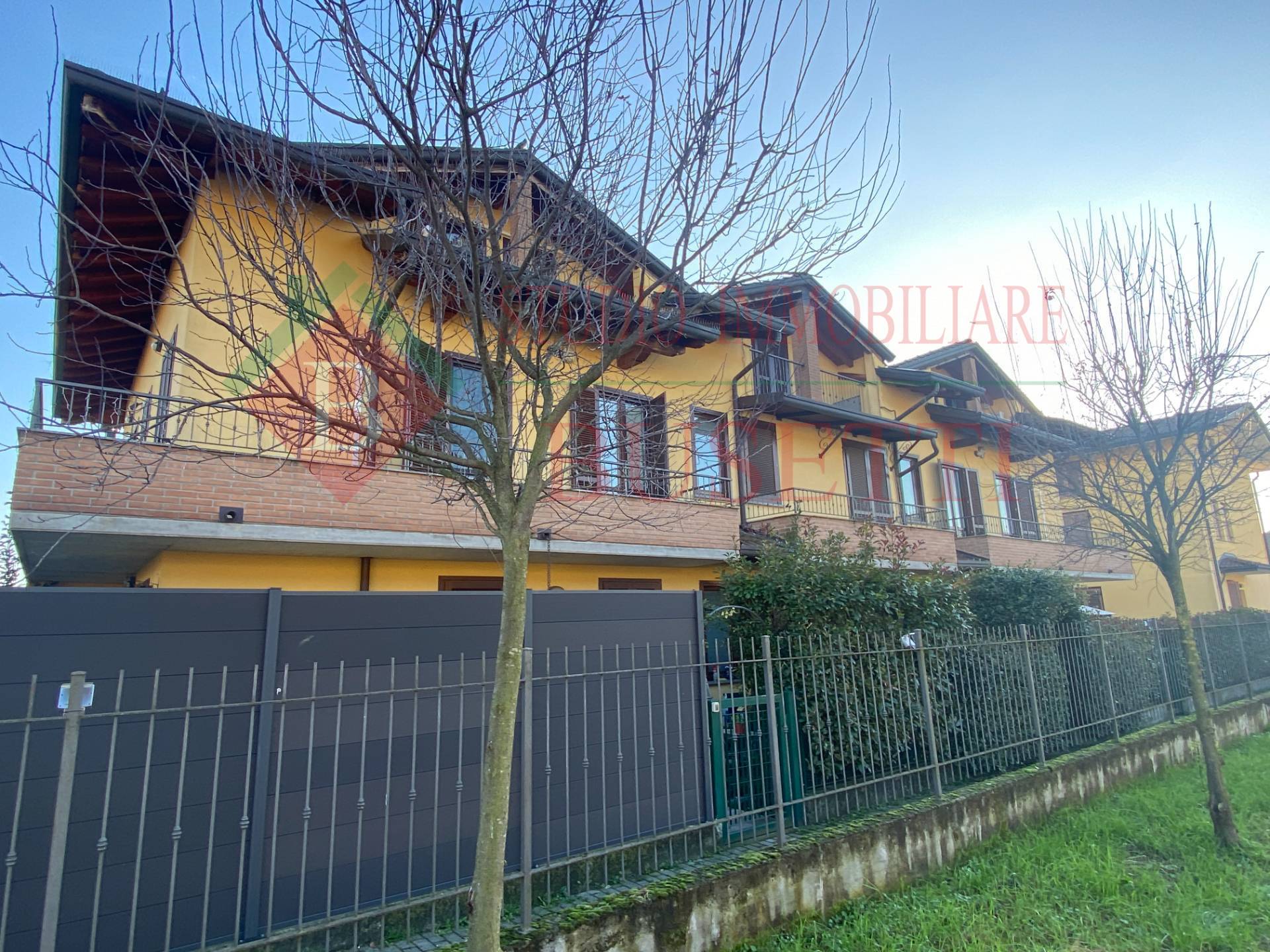 In complesso residenziale di recente costruzione adiacente il centro del paese Villetta a schiera ben tenuta disposta su due piani abitabili oltre mansarda e taverna. L' ingresso si apre sul soggiorno, una moderna cucina a vista, un disimpegno ed un bagno con finestra costituiscono la zona giorno al piano terra. L' area privata esterna è allestita con cura e presenta un piacevole angolo relax in piena riservatezza. Una comoda e luminosa scala interna collega i piani dell' immobile. Il primo piano è composto da due camere, un disimpegno, un bagno con finestra ed un balcone. Il piano sottotetto individuato come locale hobby si presenta con travi a vista e con accesso ad un pratico balcone. La taverna, un ripostiglio il tutto collegato ad un ampio box doppio completano la proprietà al piano interrato. Il confort della villetta è assicurato dall' impianto di climatizzazione, dai serramenti con doppio vetro dotati di zanzariere mentre l' impianto d' allarme garantisce una notevole sicurezza.