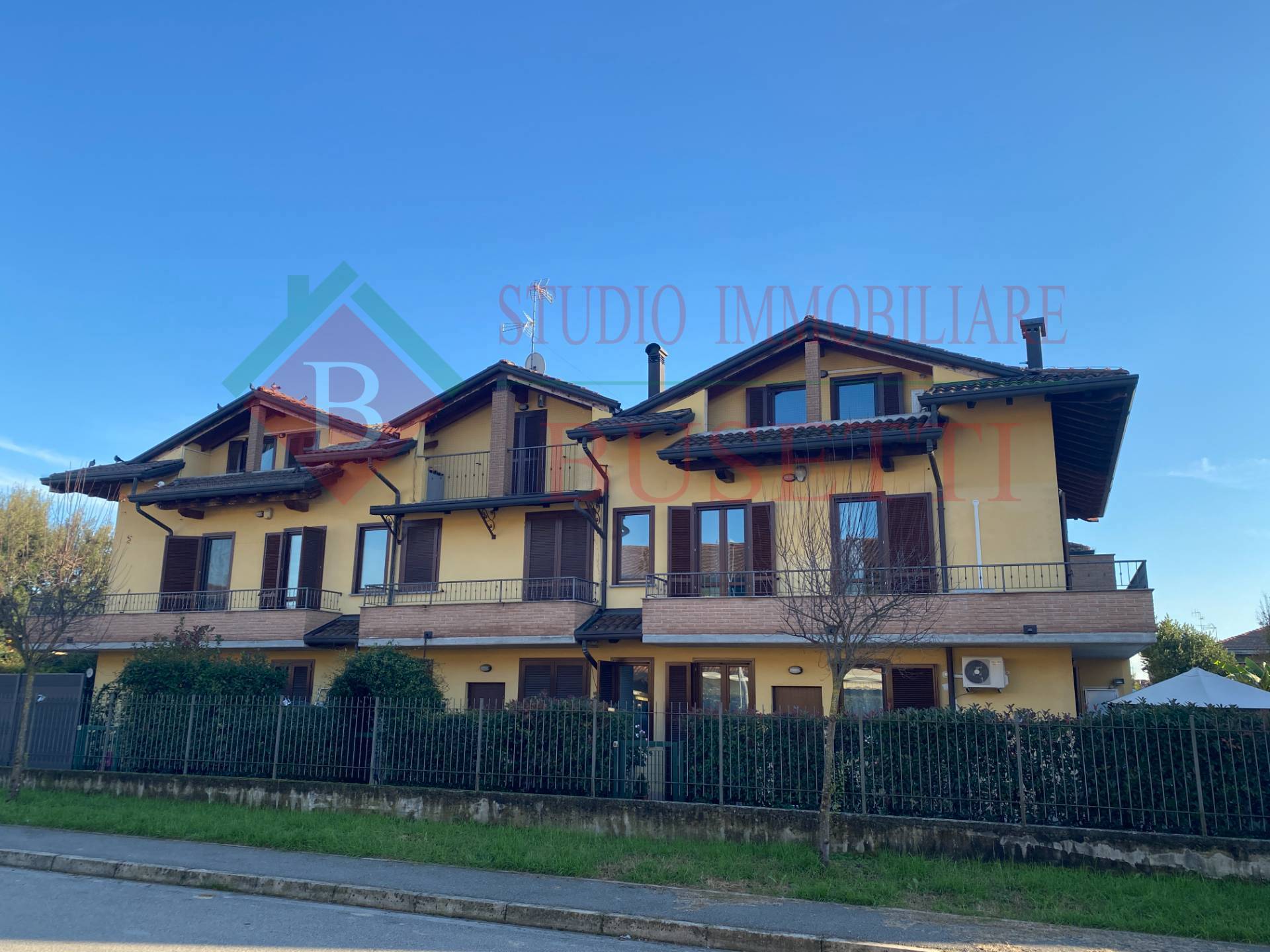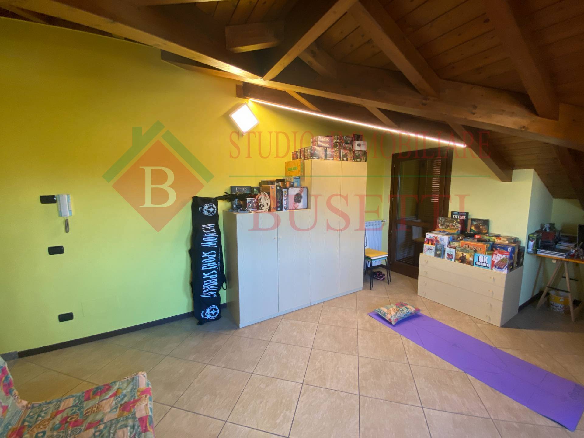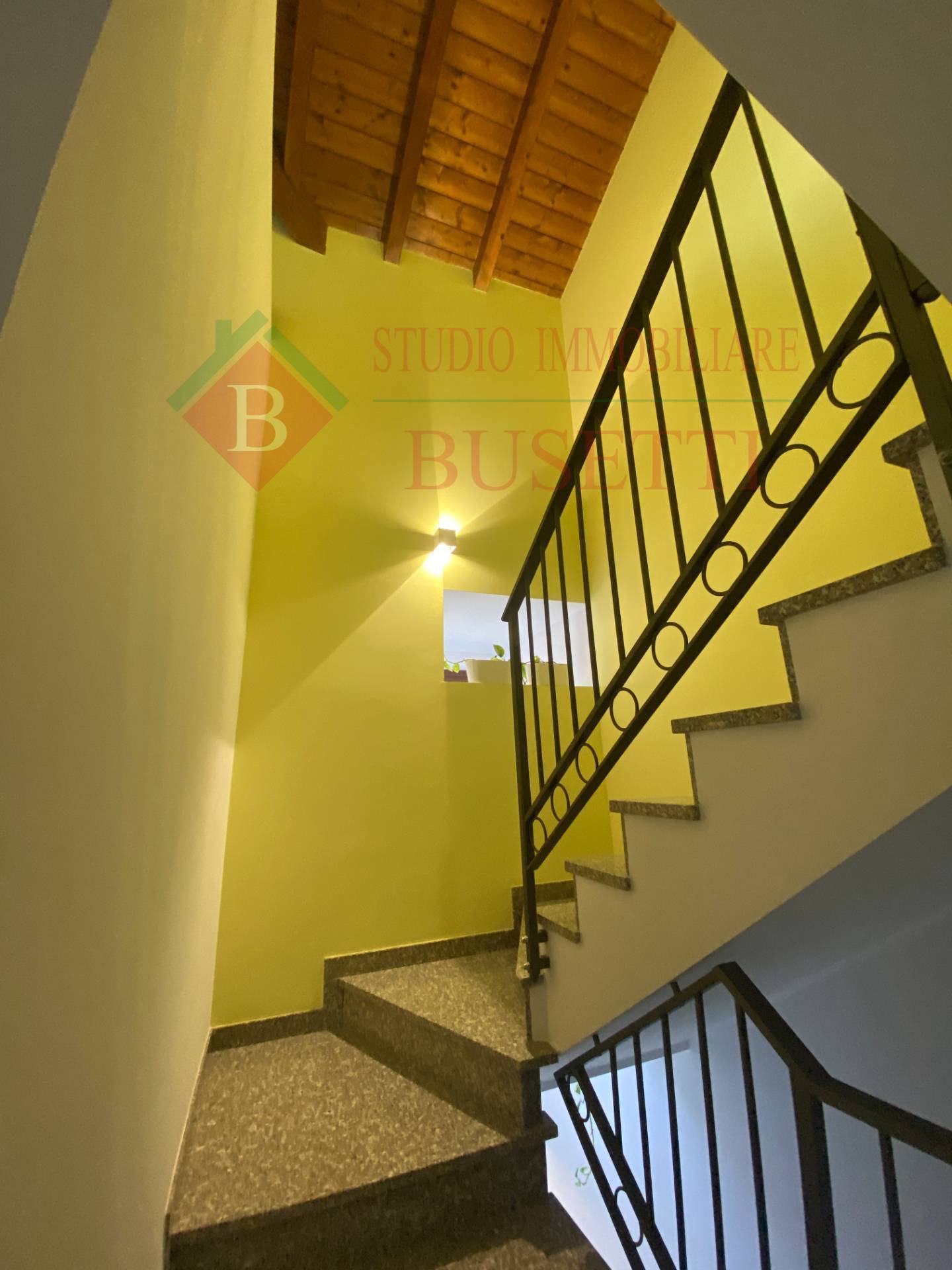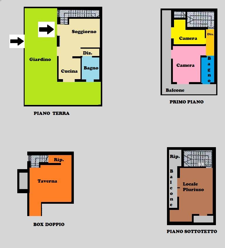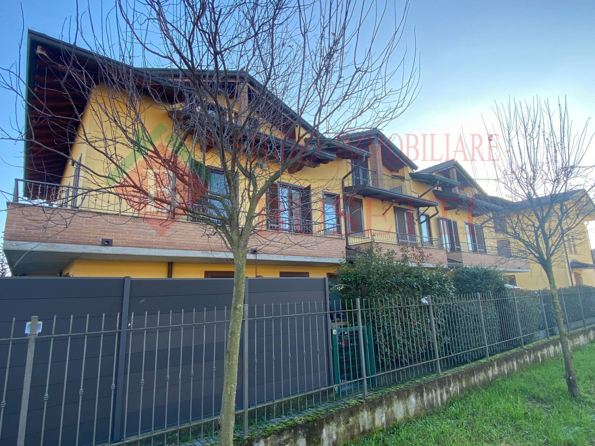 In complesso residenziale di recente costruzione adiacente il centro del paese Villetta a schiera ben tenuta disposta su due piani abitabili oltre mansarda e taverna. L' ingresso si apre sul soggiorno, una moderna cucina a vista, un disimpegno ed un bagno con finestra costituiscono la zona giorno al piano terra. L' area privata esterna è allestita con cura e presenta un piacevole angolo relax in piena riservatezza. Una comoda e luminosa scala interna collega i piani dell' immobile. Il primo piano è composto da due camere, un disimpegno, un bagno con finestra ed un balcone. Il piano sottotetto individuato come locale hobby si presenta con travi a vista e con accesso ad un pratico balcone. La taverna, un ripostiglio il tutto collegato ad un ampio box doppio completano la proprietà al piano interrato. Il confort della villetta è assicurato dall' impianto di climatizzazione, dai serramenti con doppio vetro dotati di zanzariere mentre l' impianto d' allarme garantisce una notevole sicurezza.