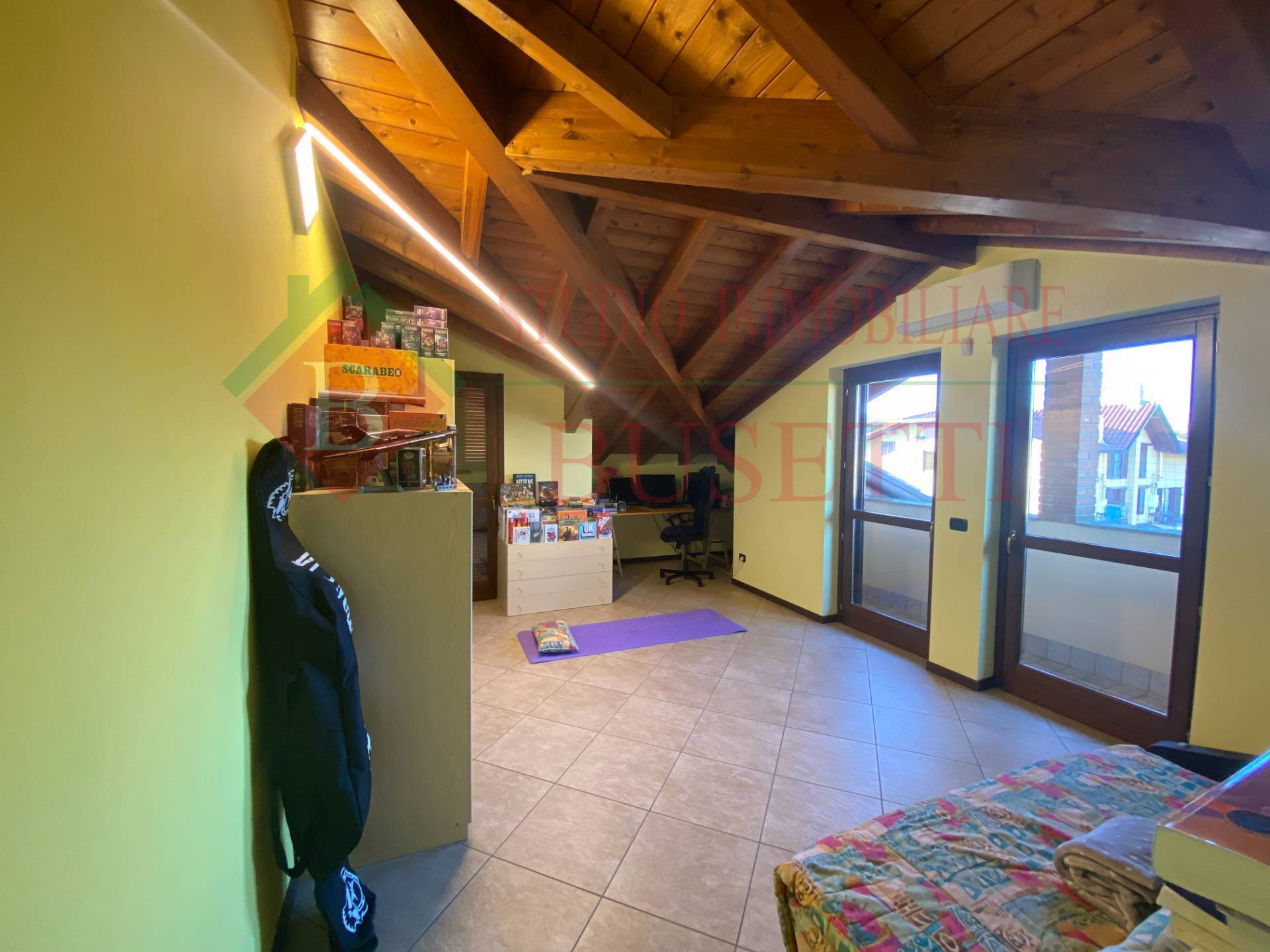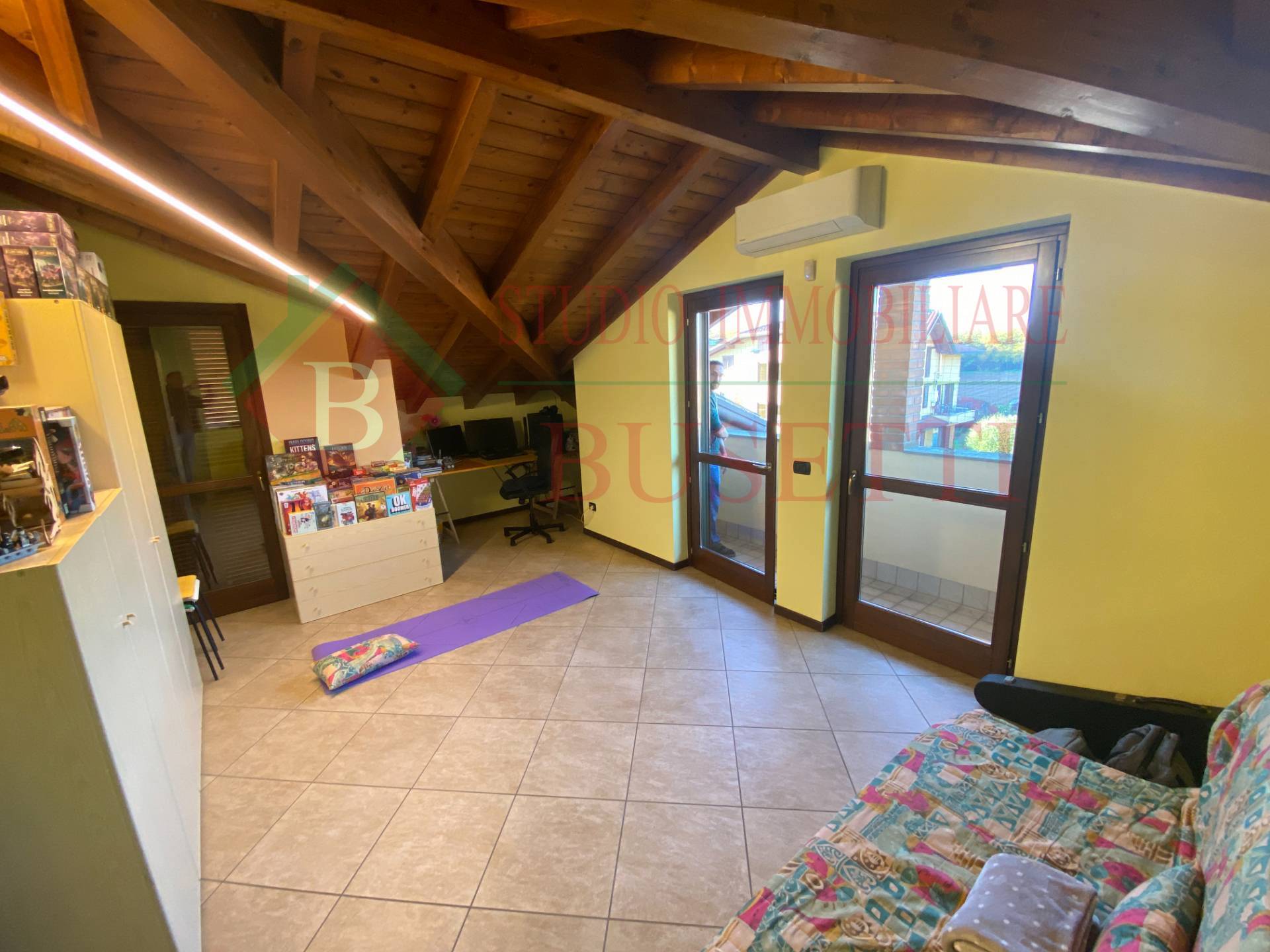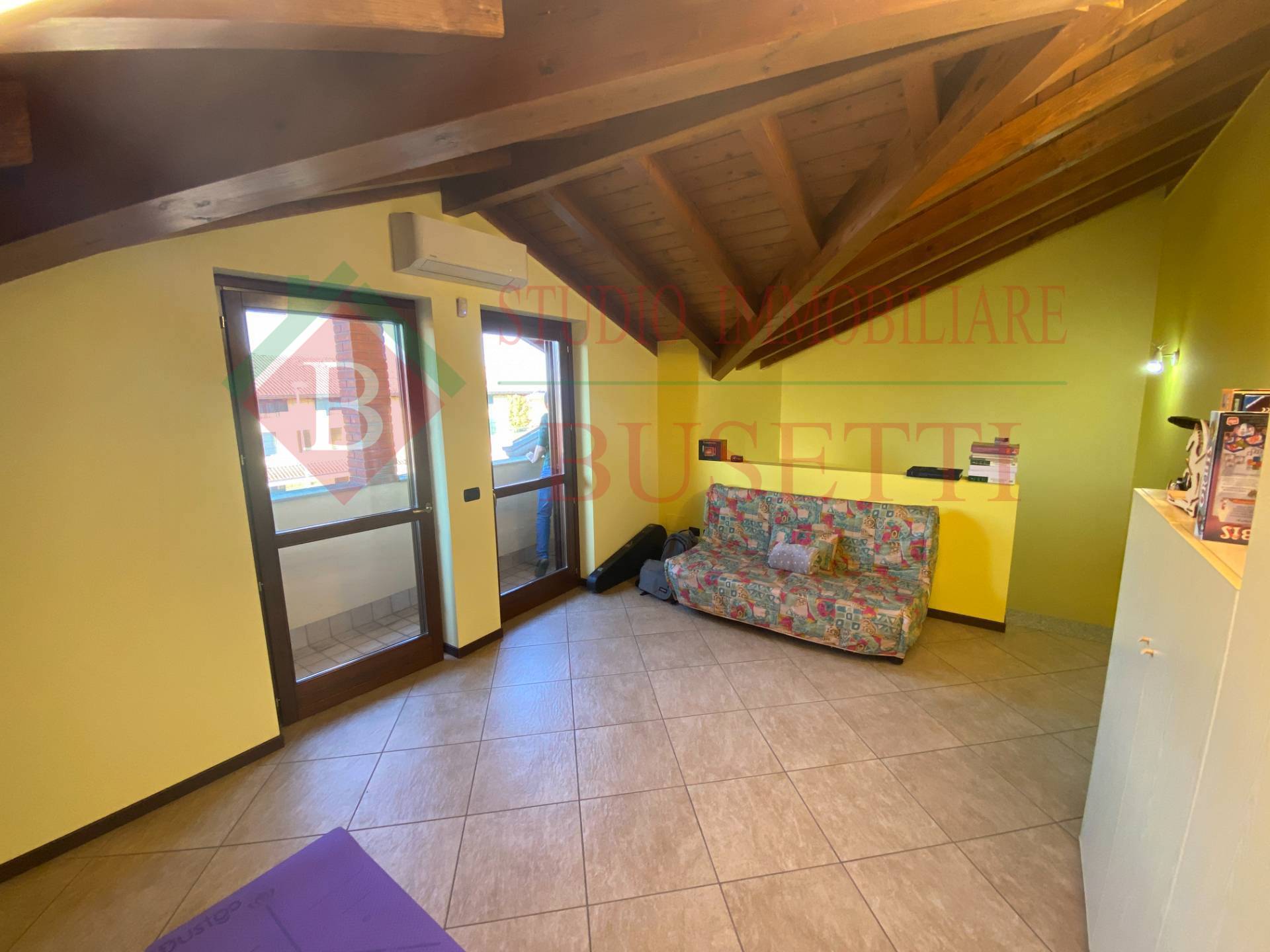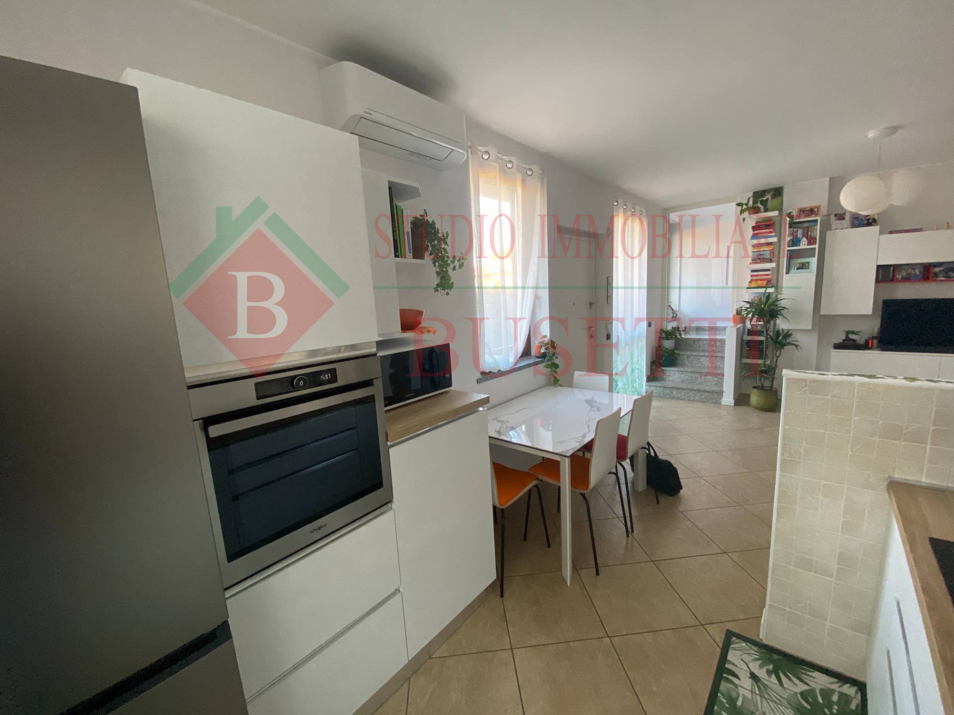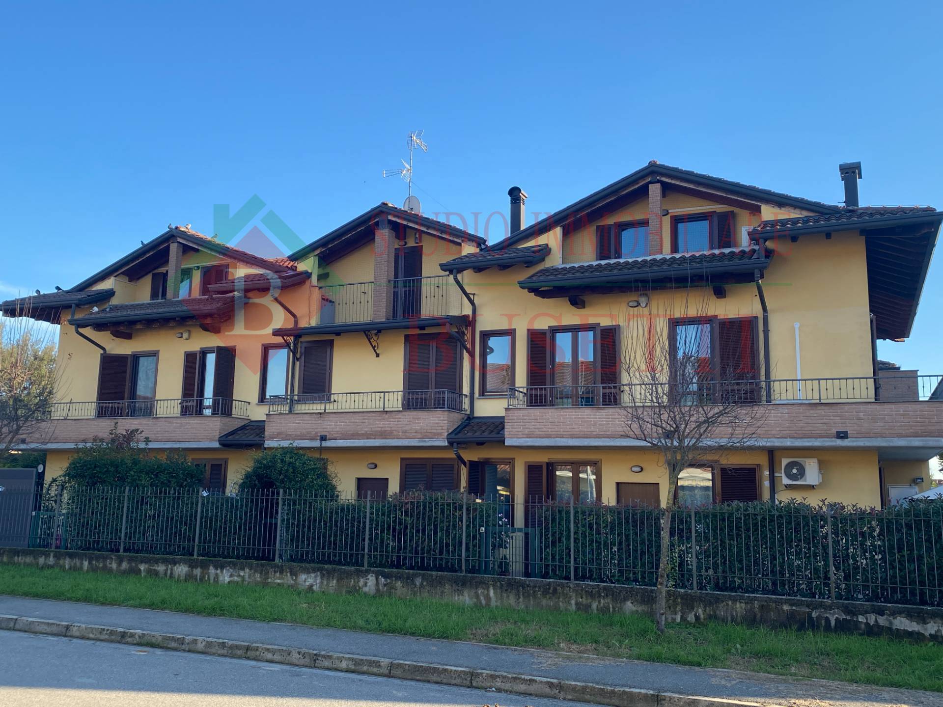 In complesso residenziale di recente costruzione adiacente il centro del paese Villetta a schiera ben tenuta disposta su due piani abitabili oltre mansarda e taverna. L' ingresso si apre sul soggiorno, una moderna cucina a vista, un disimpegno ed un bagno con finestra costituiscono la zona giorno al piano terra. L' area privata esterna è allestita con cura e presenta un piacevole angolo relax in piena riservatezza. Una comoda e luminosa scala interna collega i piani dell' immobile. Il primo piano è composto da due camere, un disimpegno, un bagno con finestra ed un balcone. Il piano sottotetto individuato come locale hobby si presenta con travi a vista e con accesso ad un pratico balcone. La taverna, un ripostiglio il tutto collegato ad un ampio box doppio completano la proprietà al piano interrato. Il confort della villetta è assicurato dall' impianto di climatizzazione, dai serramenti con doppio vetro dotati di zanzariere mentre l' impianto d' allarme garantisce una notevole sicurezza.