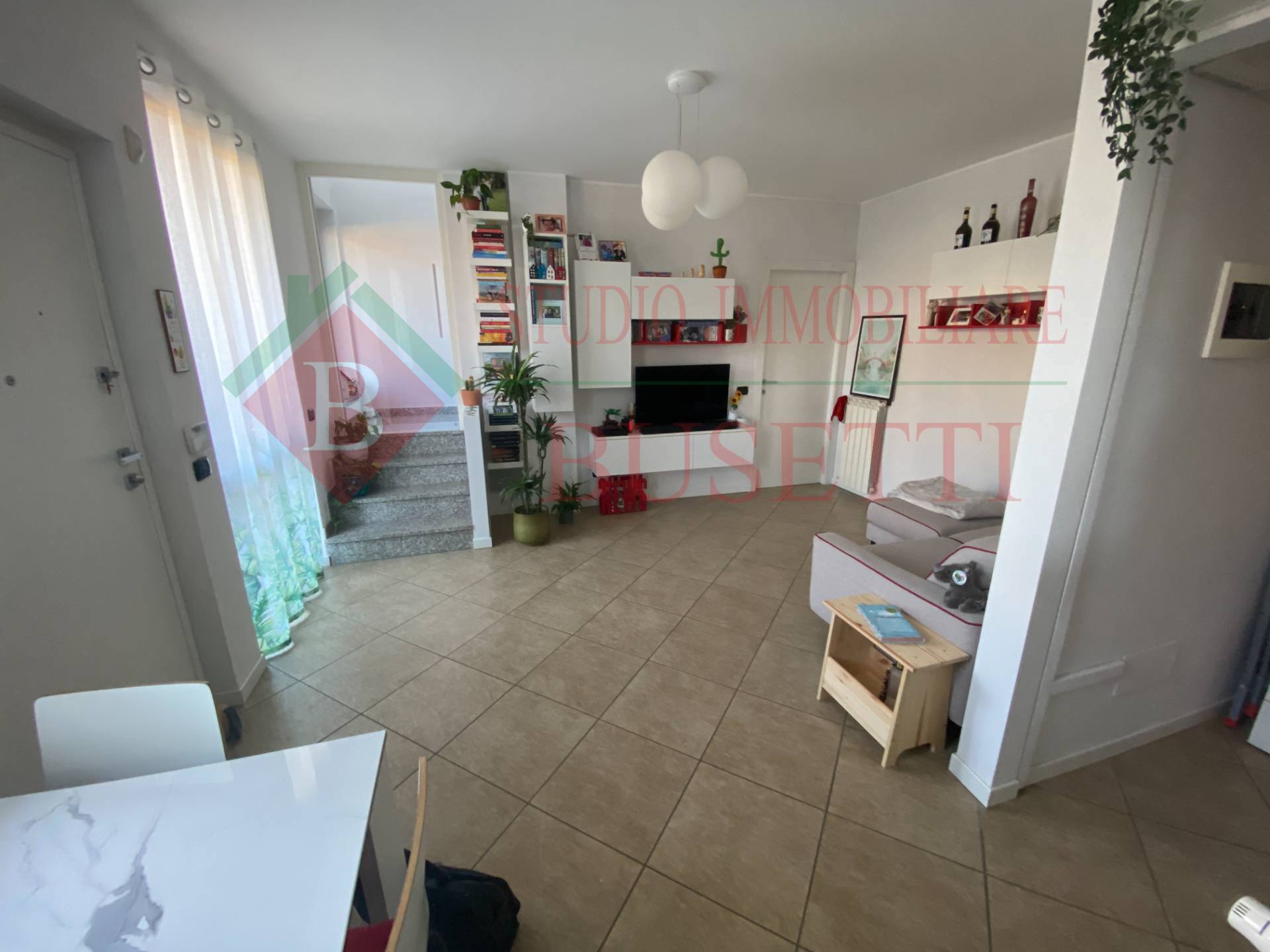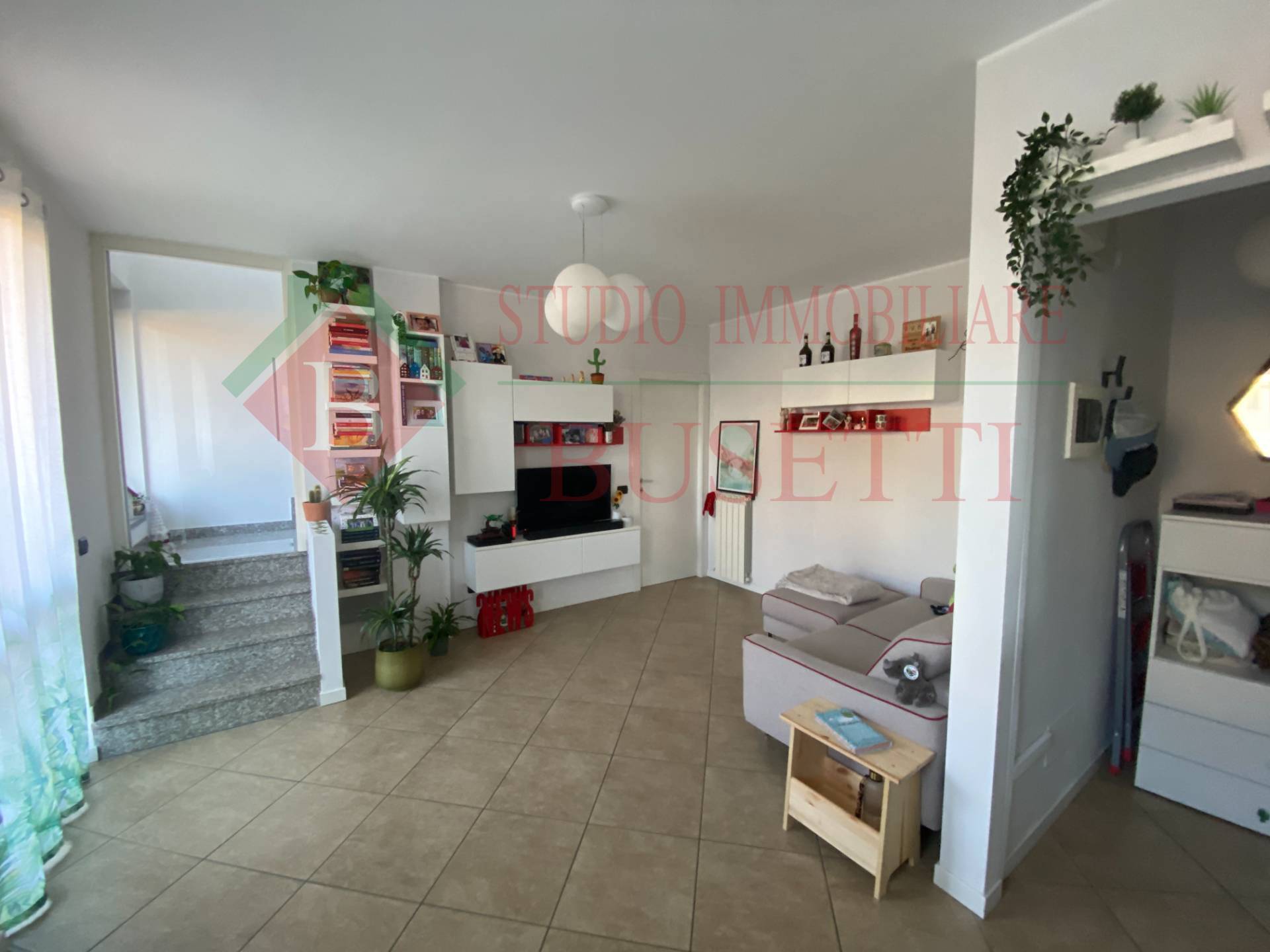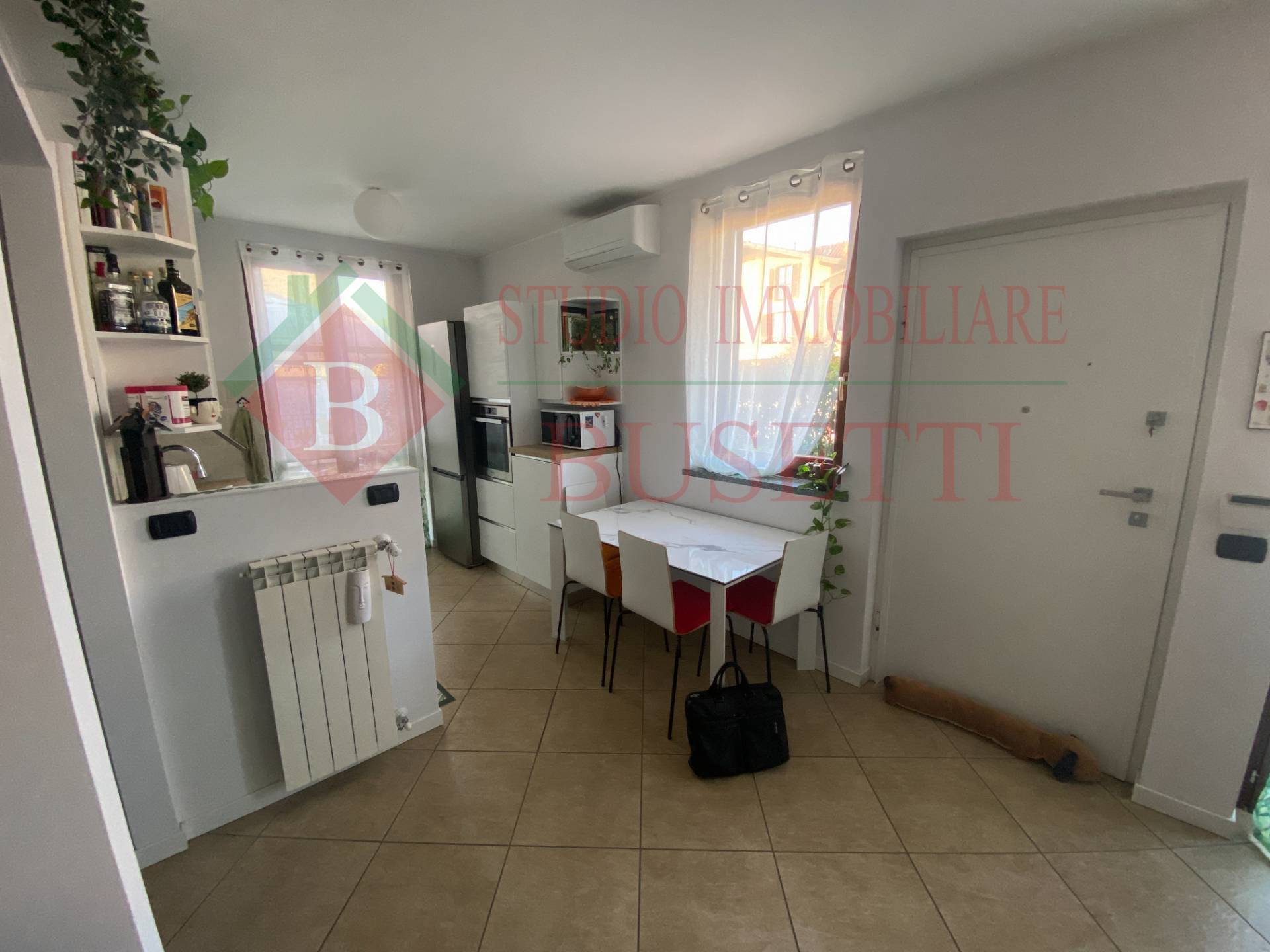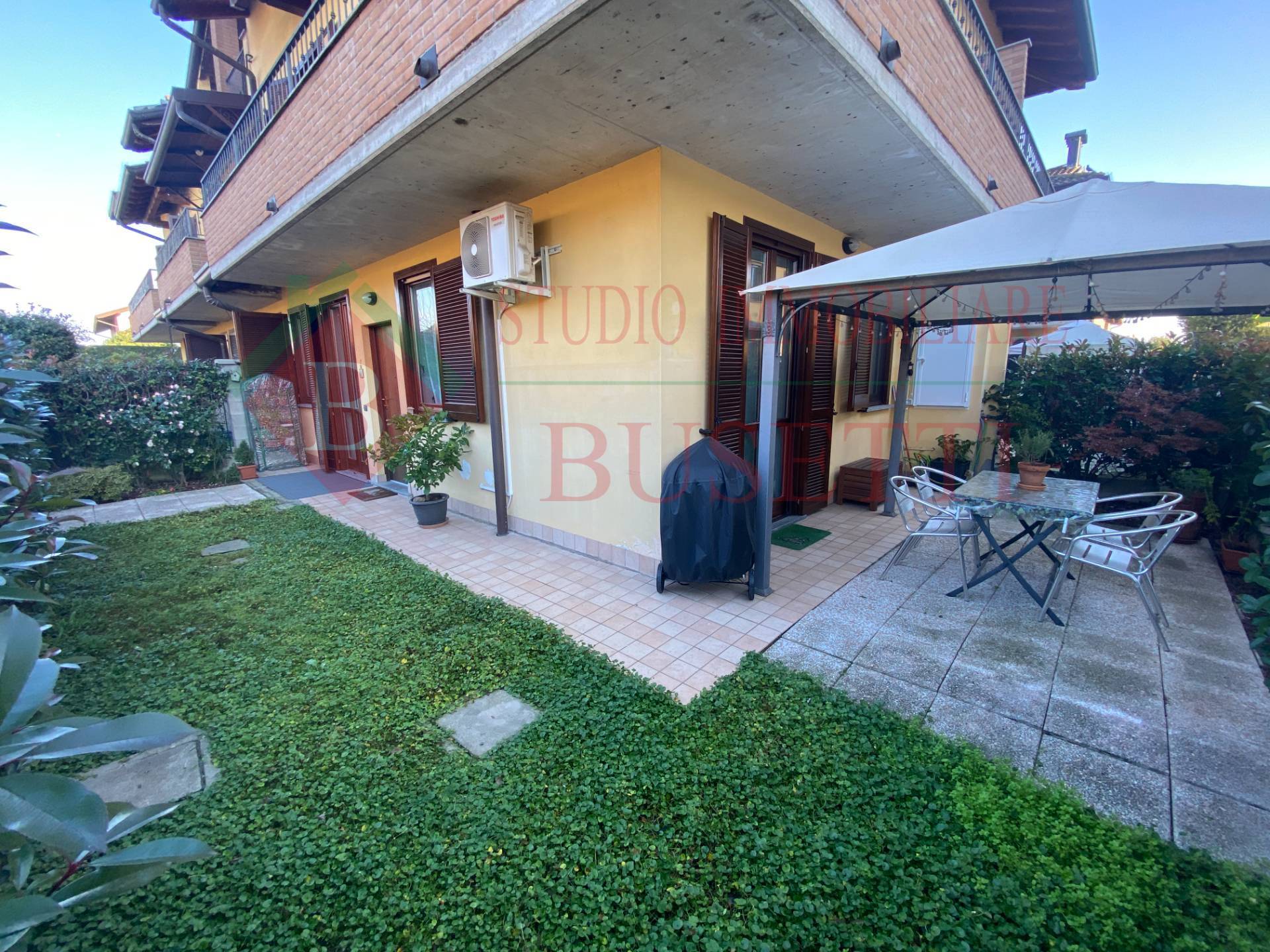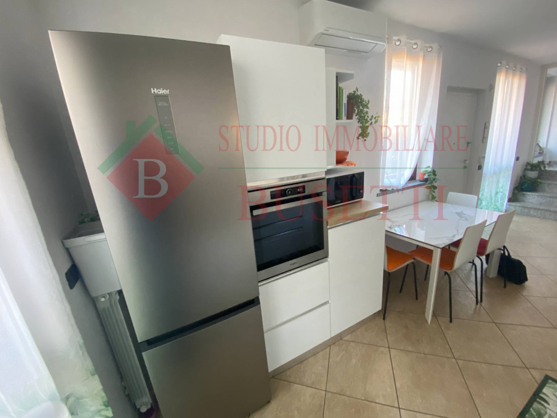 In complesso residenziale di recente costruzione adiacente il centro del paese Villetta a schiera ben tenuta disposta su due piani abitabili oltre mansarda e taverna. L' ingresso si apre sul soggiorno, una moderna cucina a vista, un disimpegno ed un bagno con finestra costituiscono la zona giorno al piano terra. L' area privata esterna è allestita con cura e presenta un piacevole angolo relax in piena riservatezza. Una comoda e luminosa scala interna collega i piani dell' immobile. Il primo piano è composto da due camere, un disimpegno, un bagno con finestra ed un balcone. Il piano sottotetto individuato come locale hobby si presenta con travi a vista e con accesso ad un pratico balcone. La taverna, un ripostiglio il tutto collegato ad un ampio box doppio completano la proprietà al piano interrato. Il confort della villetta è assicurato dall' impianto di climatizzazione, dai serramenti con doppio vetro dotati di zanzariere mentre l' impianto d' allarme garantisce una notevole sicurezza.