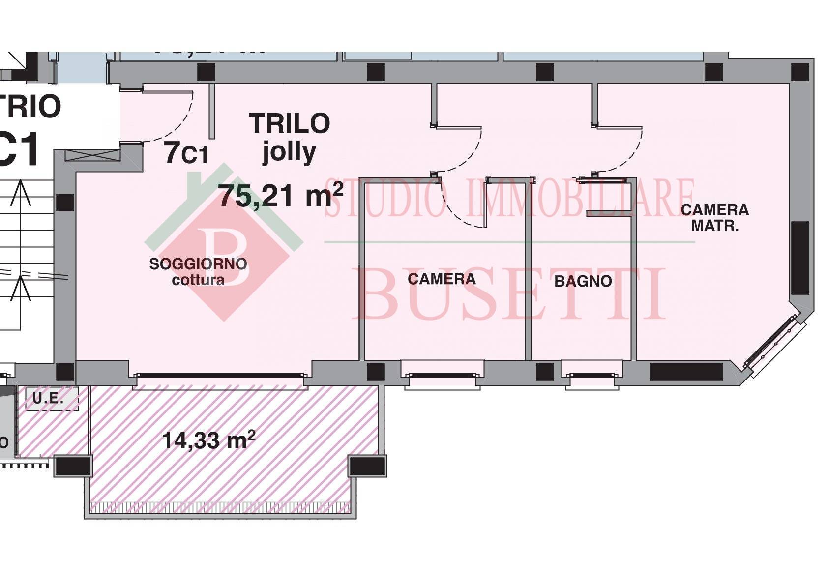 L' Appartamento 7 a parte della palazzina C1 è posto al piano secondo ed è composto da disimpegno d' ingresso, soggiorno con angolo cottura dal quale si accede ad uno splendido terrazzo di 14,33 mq, disimpegno notte da attrezzare, due camere e bagno. Completano la proprietà un vano cantina compreso nel prezzo nonché spaziosi box al prezzo extra per il singolo da € 16.000,00, per il doppio da € 33.000,00 e per il posto auto scoperto € 5000,00.